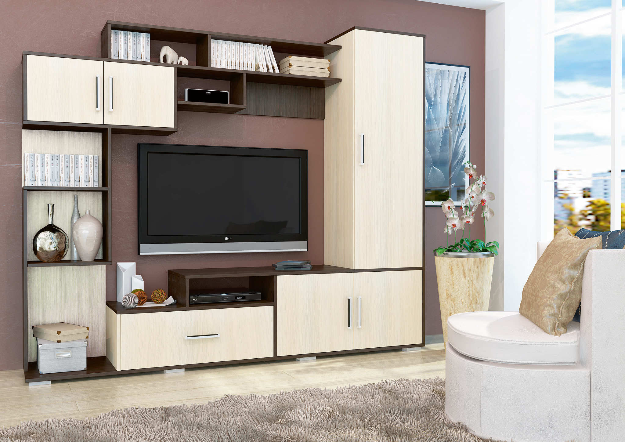 Пекин - Мини-стенка для большого телевизора с удобными полками и нишами.