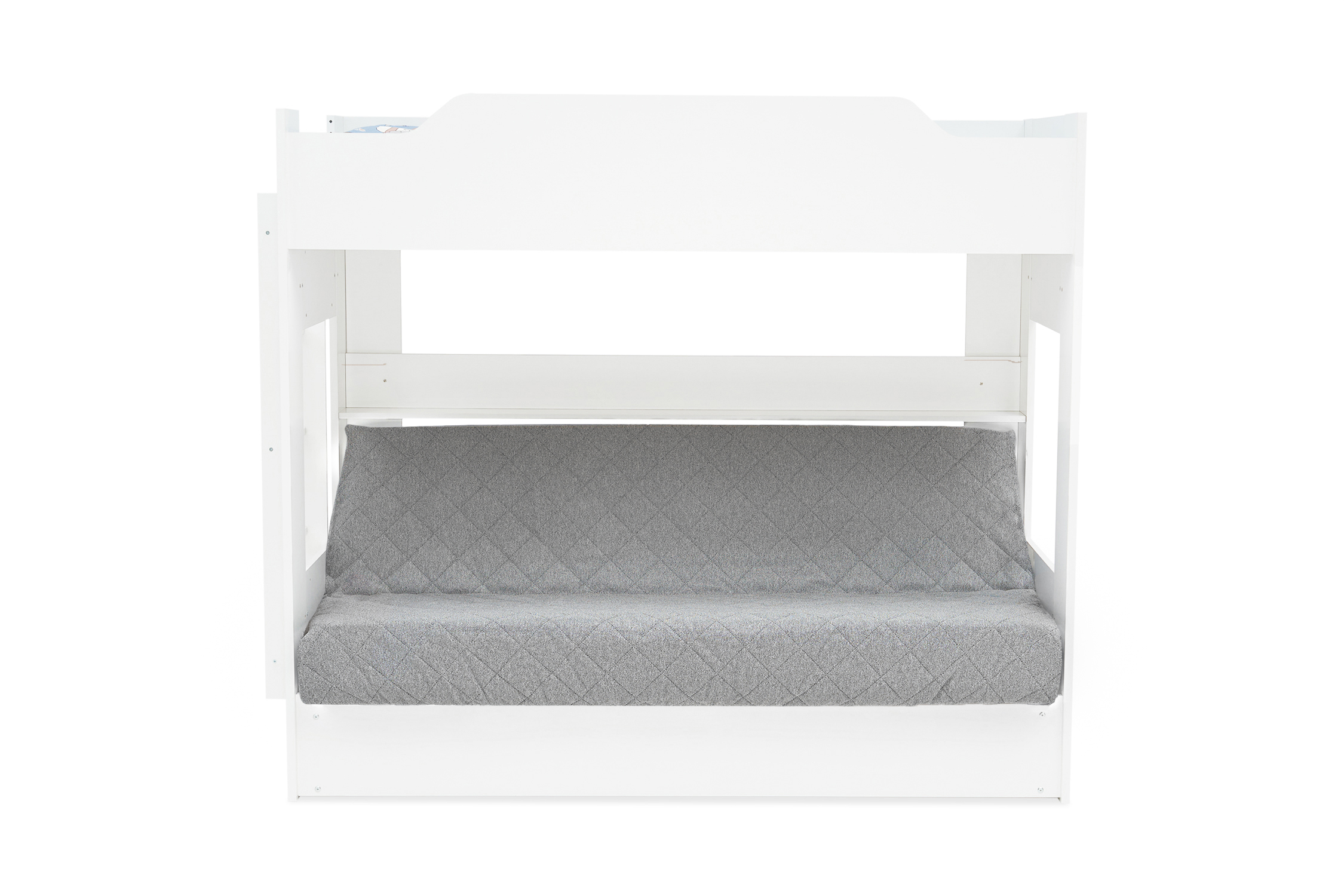 Механизм трансформации дивана: «Книжка». Рекомендуемая высота матраса на верхний ярус 17 см. Максимальная нагрузка на верхний ярус 50 кг. Лестница может быть установлена с обеих сторон кровати. Высота бортика 30 см. Максимальная нагрузка на нижний ярус 90 кг. Чехол съемный.